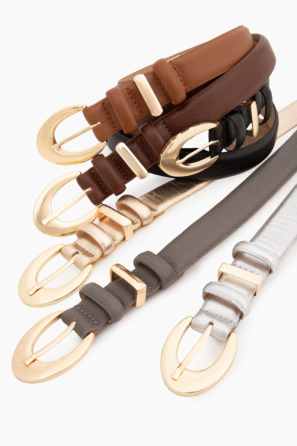 Cinto em Couro com fivela dourada oval e 3 passantes. Uma peça sofisticada e versátil que vai agregar estilo e elegância ao seu visual!