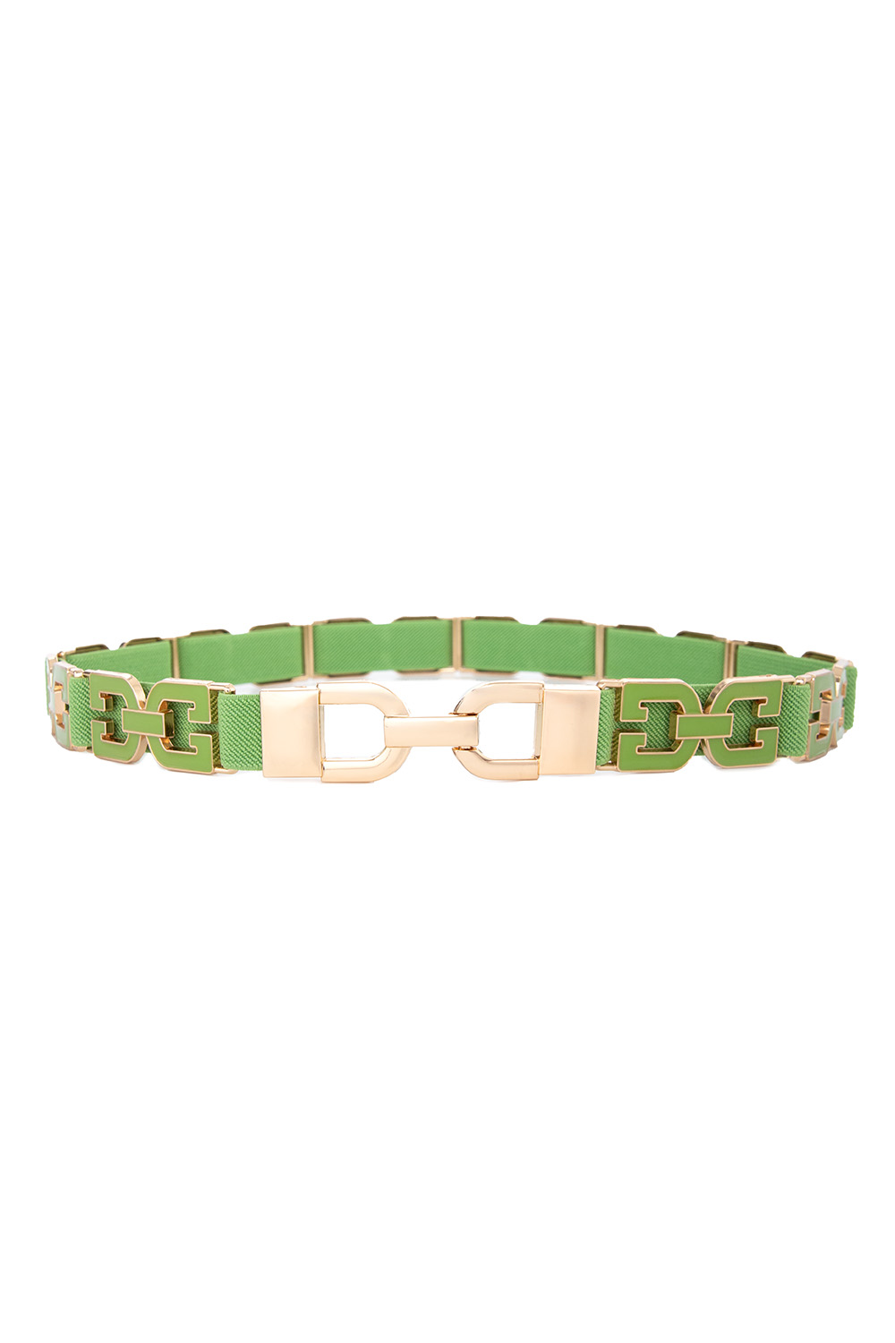Cinto de Elástico com Apliques em Metal. Ideal para usar tanto na cintura quanto no quadril. Um modelo versátil para complementar as produções.